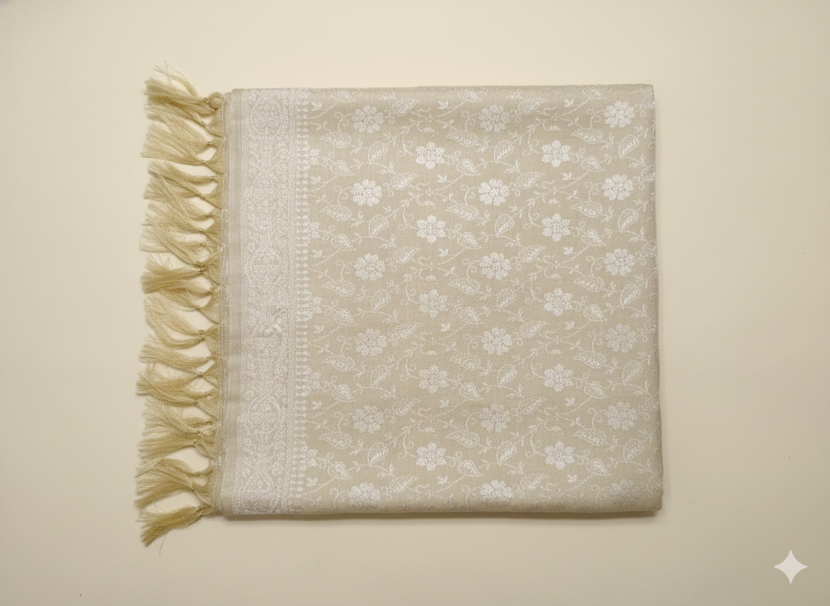 Cream HANDWOVEN Artisanal Pure Silk Banarasi Weave Stole