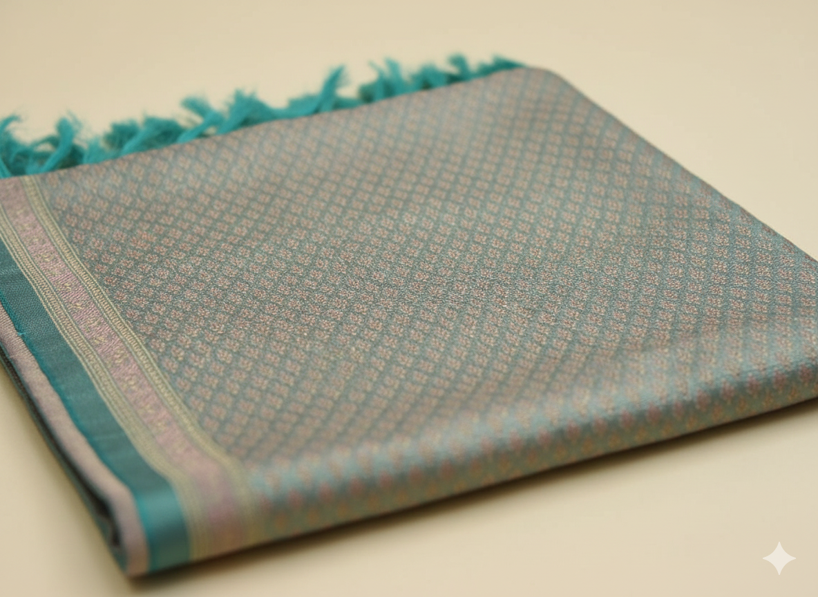 HANDWOVEN Pure silk banarasi weave stole in pastel blue